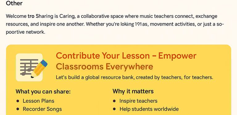 Welcome to Sharing is Caring — a collaborative space where music teachers connect, exchange resources, and inspire one another. Whether you’re looking for lesson ideas, movement activities, or just a supportive network of fellow educators — you're in the right place.